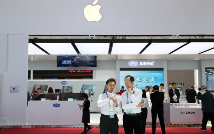 A view of Apple Inc's booth at the ongoing first China International Supply Chain Expo in Beijing. WANG JING/CHINA DAILY